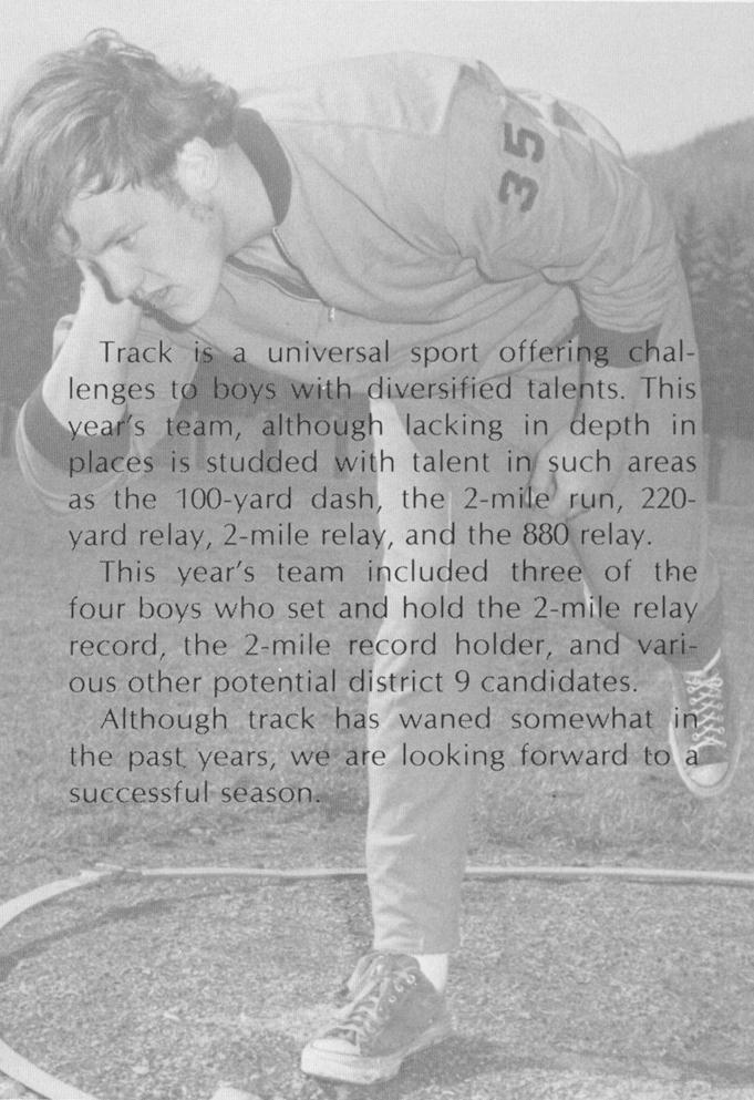 Kneeling: Joe Elliott (Manager), Gerald Gallup, Emery Gallup, Fred Schnepp, Ralph Gustafson, Steve Lynch, Larry Chase, Mike Burlingame (Manager) Standing: Warren Semmel (Coach), Roger Nelson, Kevin Kohn, David Kline, Courtney Cole, Merle Jordan, Fred Cook, Steve Covert Ricky Buffenmeyer, David Cosper, Jim Thomas (Coach) On Stone Wall: Jeffrey Brown, Harold Wright, Gary Holcomb, Tim Black, Joseph Cole, Gary Cunningham, Andrew Campbell |